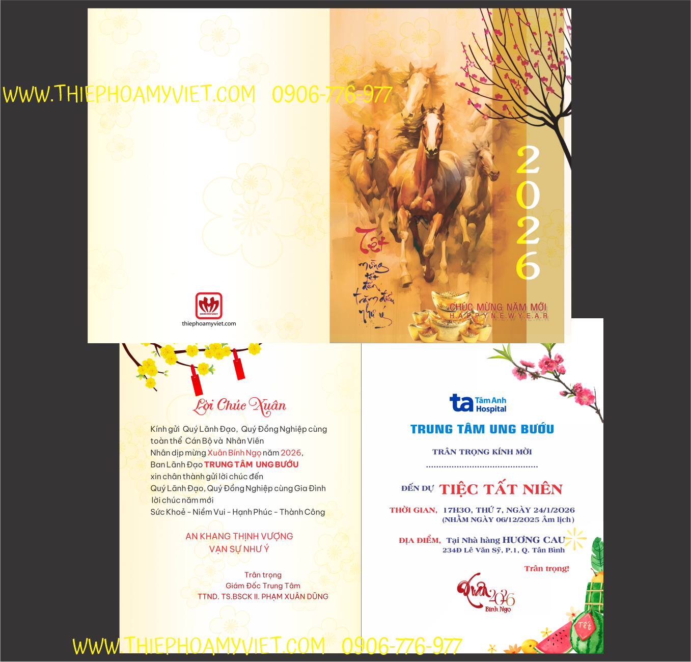 Công ty thiệp Hoa Mỹ Việt là thương hiệu chuyên tạo mẫu in thiệp chúc mừng các chủ đề, tự tin sẽ làm quý khách hài lòng về dịch vụ tạo mẫu của công ty chúng tôi. Mẫu Thiệp Chúc Tết cùng linh vật tượng trưng cho từng năm được chúng tôi thiết kế tinh tế phá cách với màu sắc sang trọng cùng tính thẩm mỹ cao giúp đối tác thể hiện gu thẩm mỹ với khách hàng trong dịp năm mới. Đặt mua thiệp online từ văn phòng công ty tại quận gò vấp tp.hcm cực đơn giản. Gửi ngay lời chúc sức khỏe và thịnh vượng trong dịp tết nguyên đán tới đối tác cùng sản phẩm thiệp của công ty chúng tôi