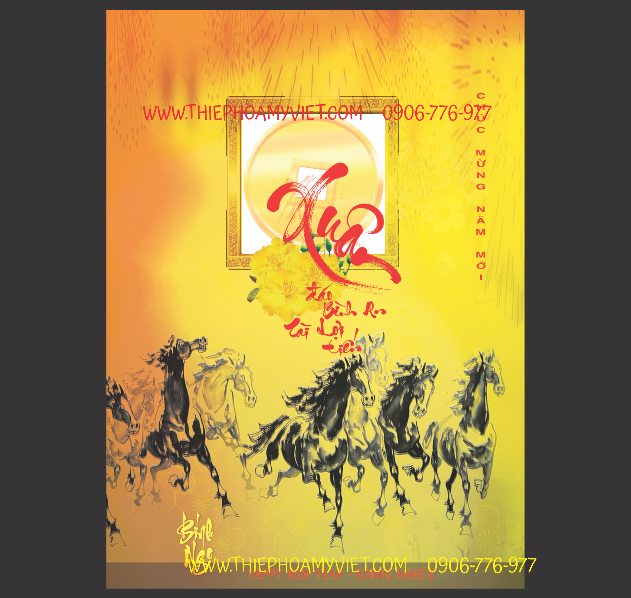 Thiệp chúc tết Bính Ngọ in lời chúc