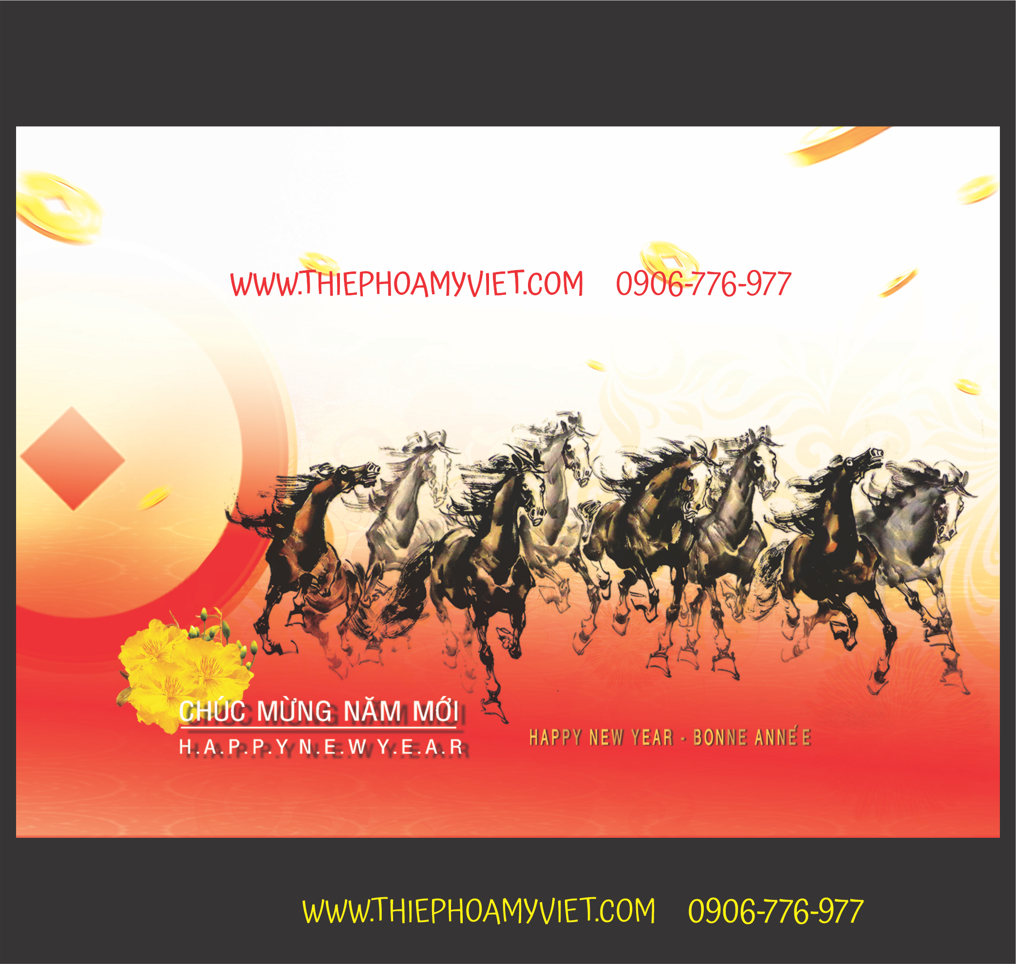 Thiệp chúc tết Bính Ngọ in lời chúc