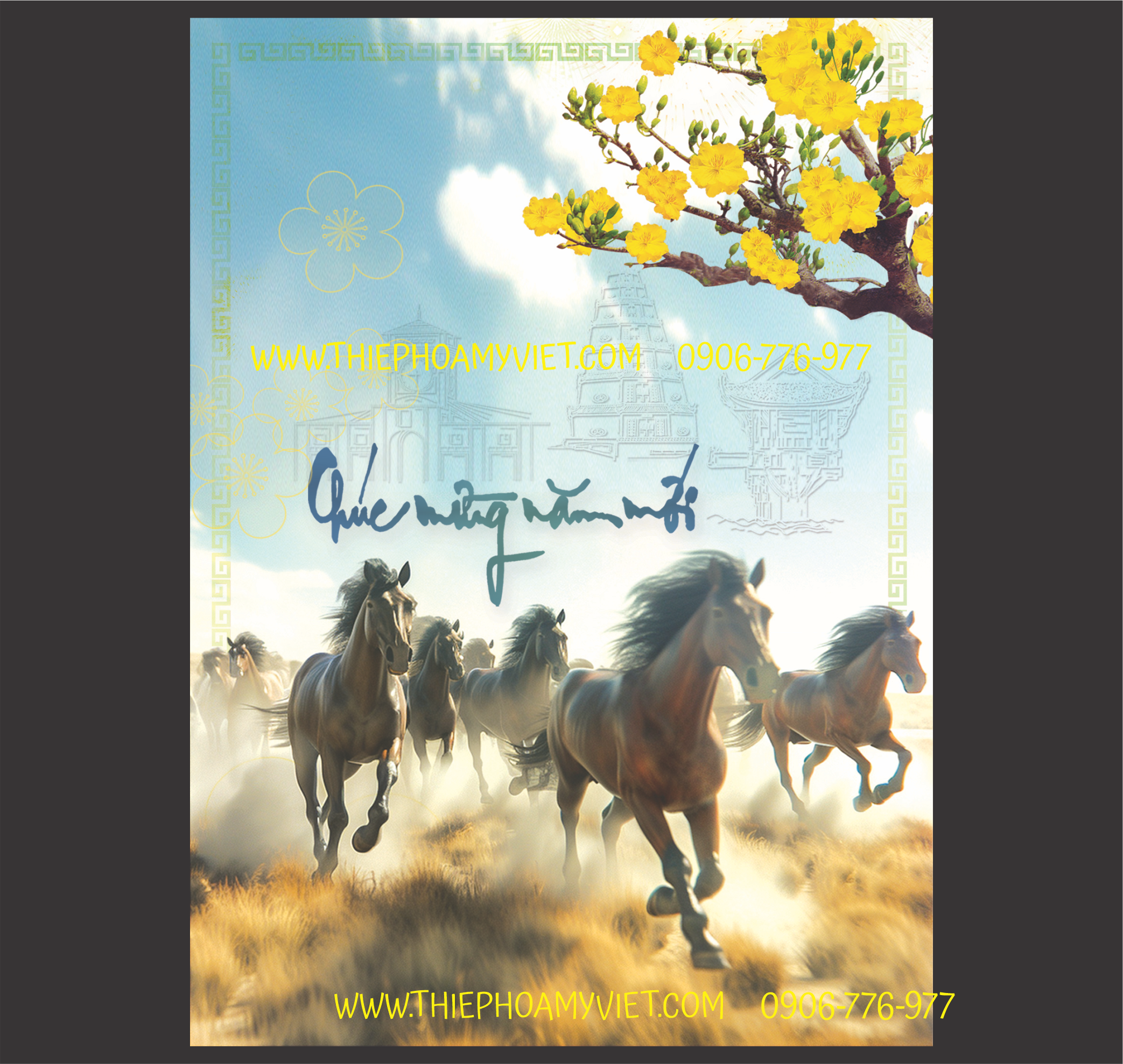 Thiệp chúc tết Bính Ngọ in lời chúc