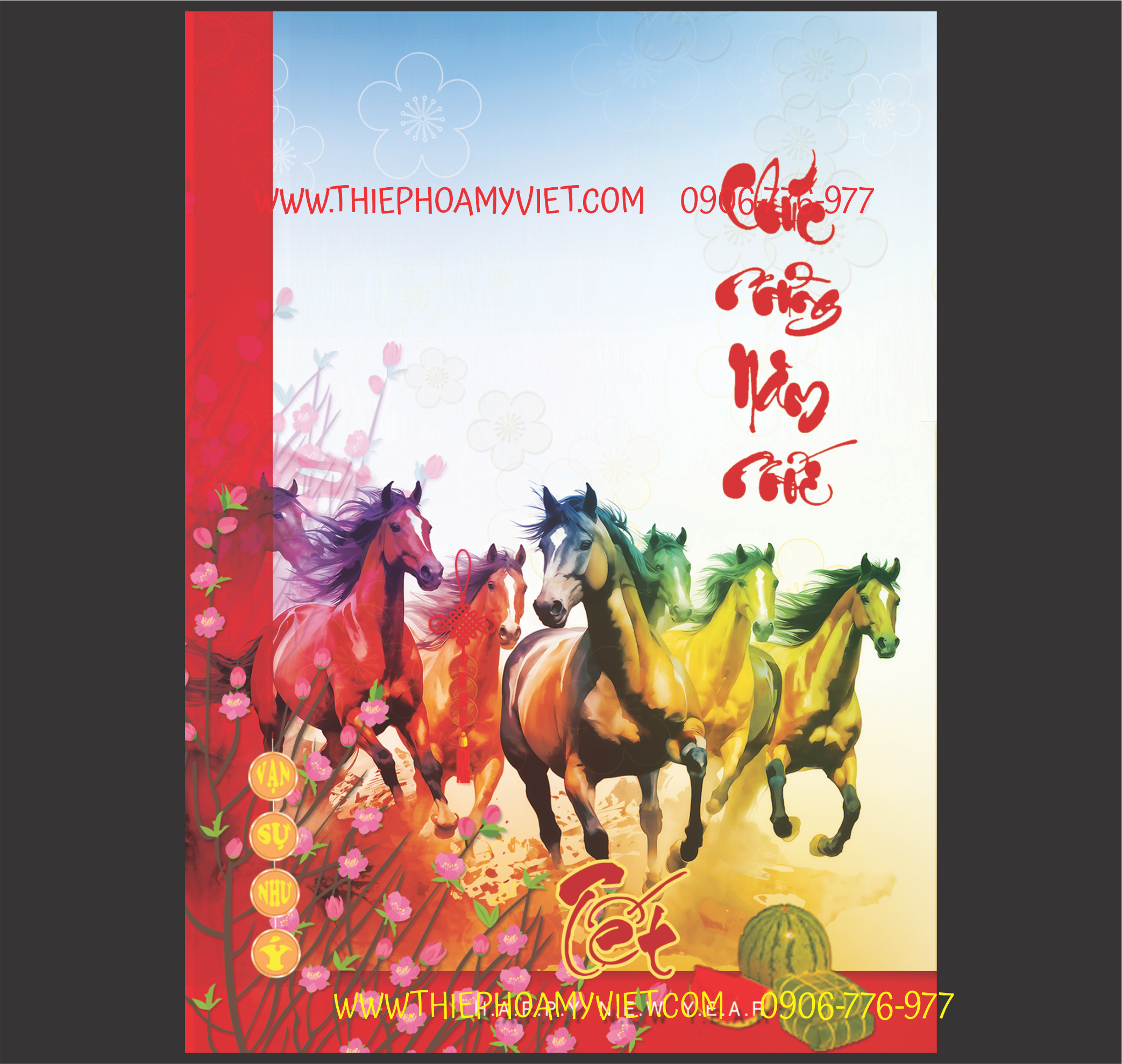 Thiệp chúc tết Bính Ngọ in lời chúc