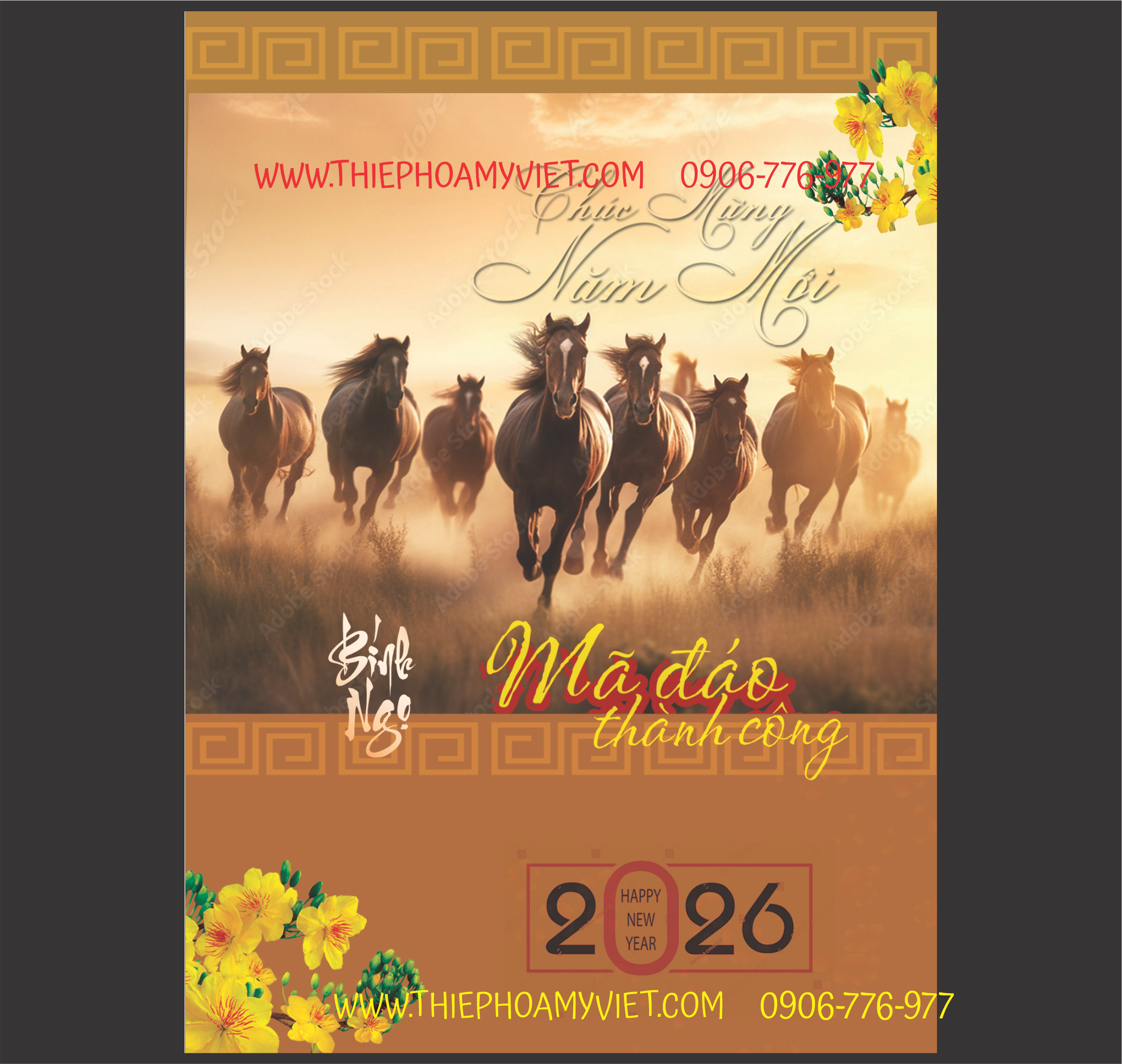 Mẫu thiệp chúc Tết Bính Ngọ 2026