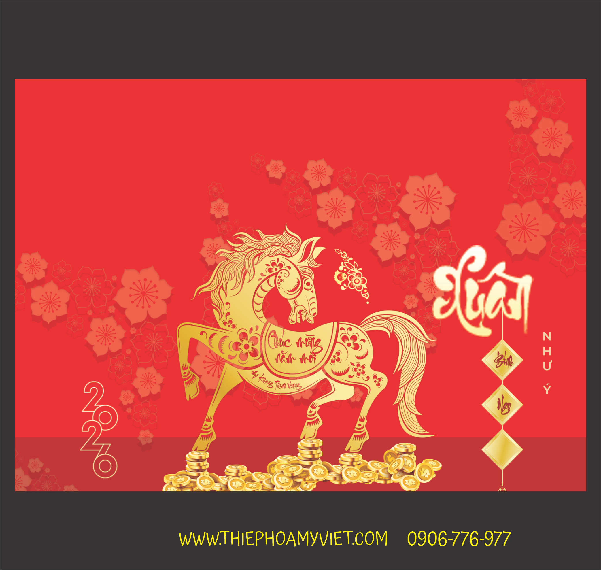 Thiệp chúc tết năm bính ngọ 2026, ngựa vàng tươi thắm tượng trưng cho mọi sự may mắn thành công đến với mọi người trong năm mới.