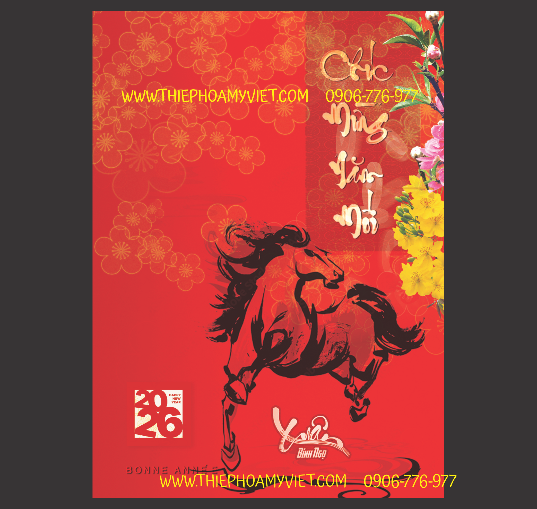 Mẫu thiệp chúc tết năm 2026 Bính Ngọ