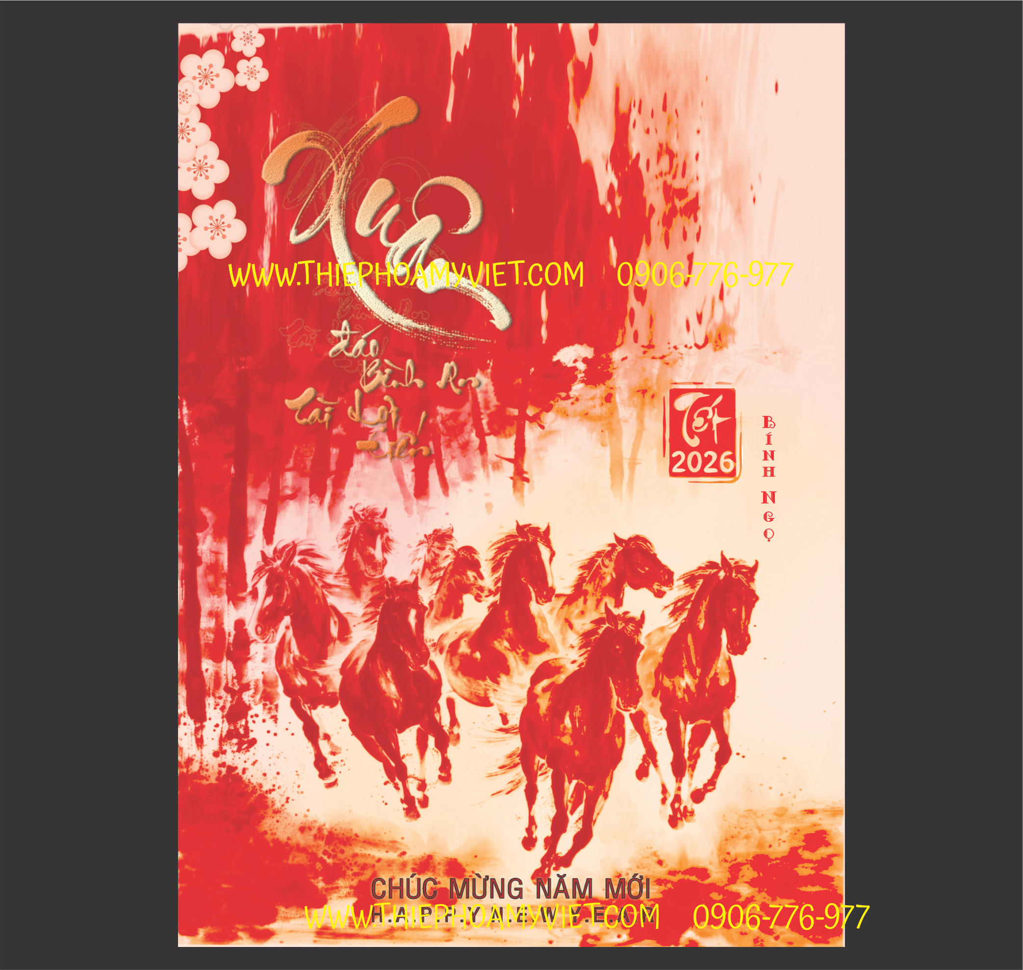 Thiệp chúc tết Bính Ngọ in lời chúc